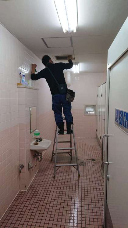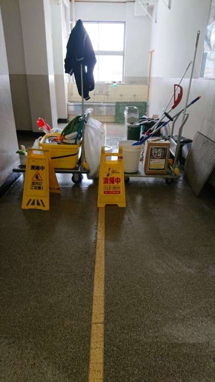 PTAのご協力により構内のすべてのトイレを掃除していただきました。便器や壁だけではなく、手洗い場や天井もきれいにしていただきました。