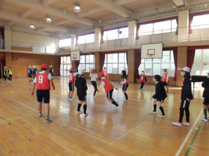 バスケットボールをしています。パスやシュートが随分と上手になり、試合らしくなってきました!