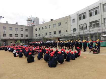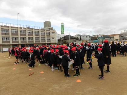 「ありがとう!気持ちいっぱい!笑顔の花をさかせよう!」をテーマに1年生から5年生が準備をしてくれました。首飾りをプレゼントしています。