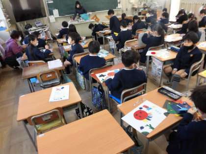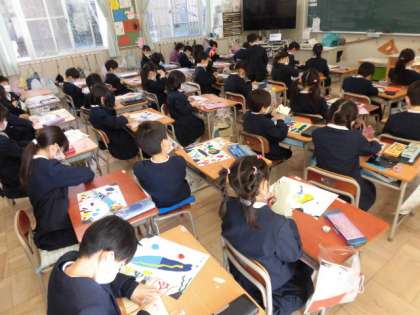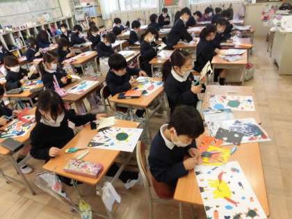 海の生物を切り絵でつくっています。とてもカラフルに仕上げています!
