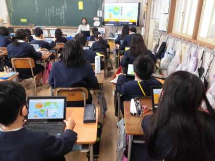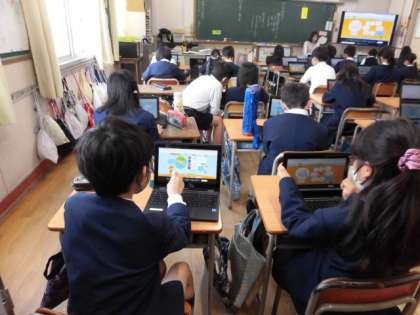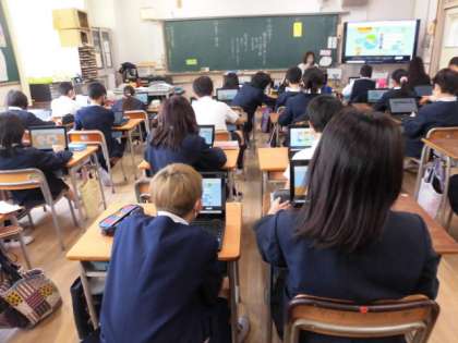 「比べてみよう!世界の食と文化」ということで、タブレットでいろいろな国の食と文化について調べ、まとめていきます。