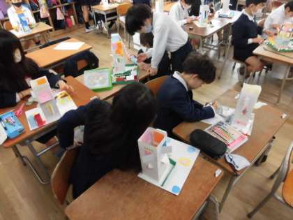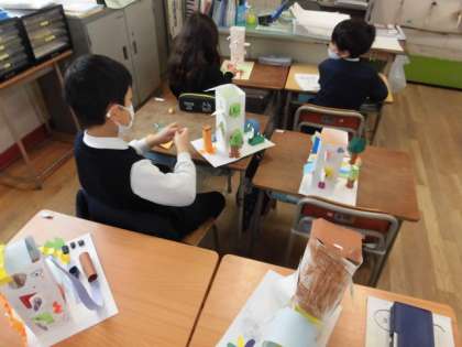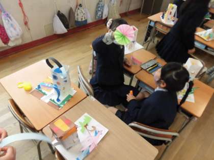 「あいた窓からこんにちは」という自分のオリジナル作品を作っています。楽しそうな作品に仕上がりましたね!