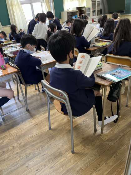 教科書運び、下駄箱や傘立てのシール貼り、みんなのために進んで仕事をしている人がたくさん。すばらしい!