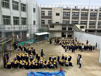 新しい学年になって初めての避難訓練を行いました。給食室から出火した想定の訓練です。