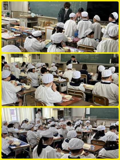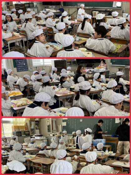 今日は給食のようすを見に行きました。子どもたちに聞くと、満足そうな答えばかりでうれしくなりました。苦手なものがある子もがんばっているようです。ムリせず、でも少しムリもしながら、栄養満点の給食を食べていきましょう。