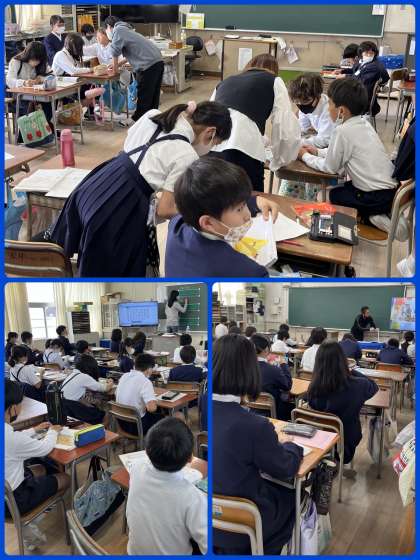 5年2組理科の学習。テスト前の最後の確認をしていました。先生に聞いたり、友だち同士で確認したり。いい光景です!自分の力は発揮できたかな?