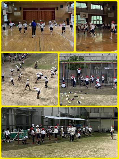 3年生は3つに分かれて体育の学習。狭くなった運動場ですが、子どもたちの体力がつくように先生たちもいろいろと工夫してくれています。