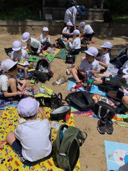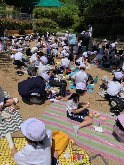 「このおにぎりは…」「このたまごやきはね…」「デザートに…」たくさんの解説付きお弁当紹介が。マリオに、ポケモンに、ちいかわ、、、キャラクターもたくさんありました。おうちの方が朝早くから丁寧に心を込めてつくっていただいたお弁当。子どもたち自慢のお弁当ばかりでした。保護者のみなさんの愛があふれていて私まで心があたたかくなりました。早朝からありがとうございました。
