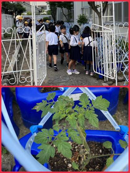 2年生も朝の水やり、がんばっています。
