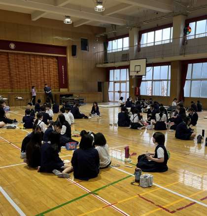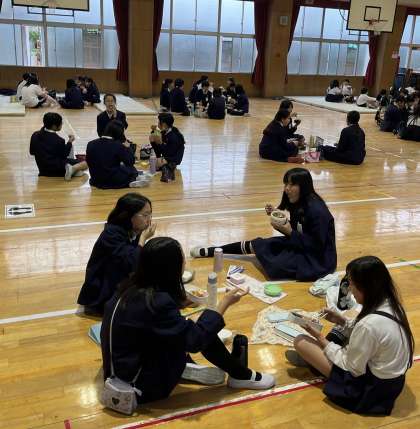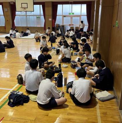 でも、嘆いていても仕方がない。小学校でお弁当を食べる経験も今日が最後かもしれない!ということで学年全員で講堂でお弁当を食べました。