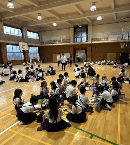 せっかくの機会ですので今日は学年全員で講堂でお弁当。「食べるのもったいなーい」と教えてくれるほどかわいらしいお弁当や「これママがつくってくれてん」「パパがつくってくれた!」「好きなものばっかり」と自慢のお弁当。本当に幸せそうに食べていました。保護者のみなさん、早朝からありがとうございました。延期となりましたので、またつくっていただくことになりますが、どうぞよろしくお願いします。