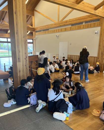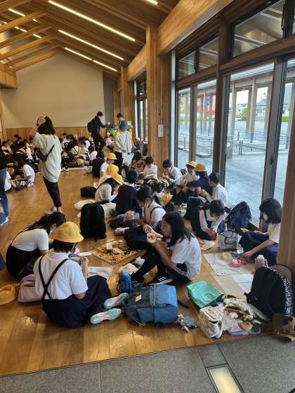 雨のため、場所をお借りして室内でのお弁当・おやつタイムとなりました。