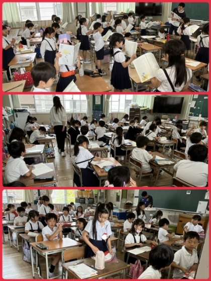 2年1組国語の学習。群読に取り組んでいました。自分のペースで読む音読も大事ですが、まわりの人たちの声に合わせて読む群読も大事な学習です。学びとなります。これからも心をそろえて、群読に取り組んでくださいね。