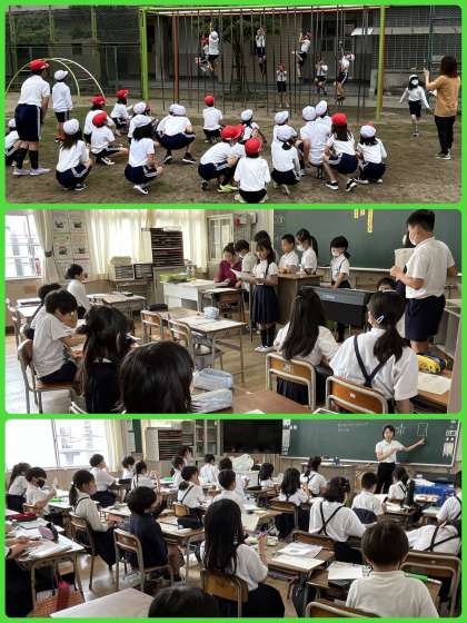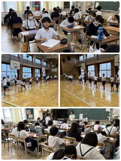 4年1組体育の学習は、器具を使った運動「登り棒」。たくさんの人が上までたどり着いていました。すごい!あともう一歩、いや一手の人も。次こそは…。