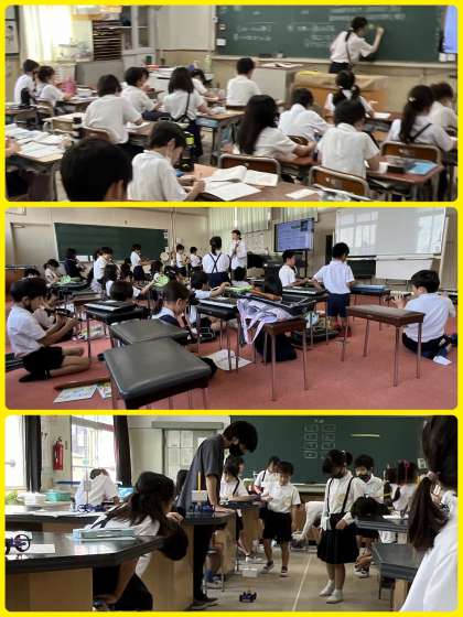 3年3組理科「風とゴムの力のはたらき」。今日は「風の強さと車が動くきょり」について実験を通して学習していました。風が強くなったとき動くきょりはどうなったか、結果をまとめて、復習もしておいてね。