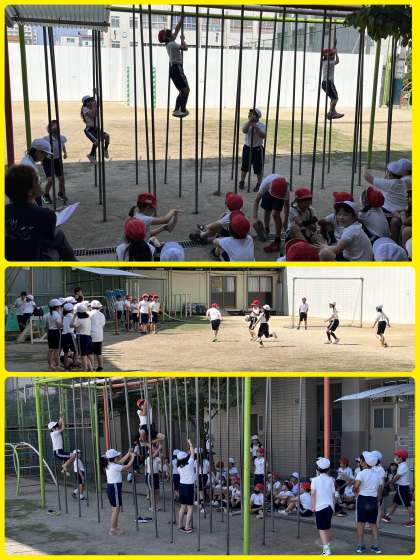 3年2組3組は運動場で体育の学習。登り棒に取り組んでいました。上までたどり着かなかった人もあきらめず、努力を続けてほしいです。がんばって!