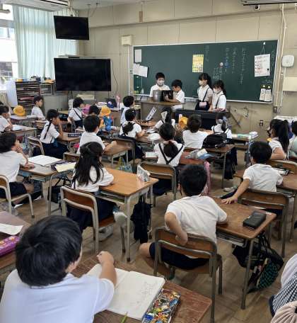 今日は2年生の教室に図書委員会のみなさんが紙芝居や本の読み聞かせに来てくれました。ありがとう。