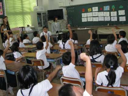 漢字学習がはじまりました。漢字の成り立ちについて、象形文字といしての漢字の紹介です。みんな興味津々です。たのしく学習できました。