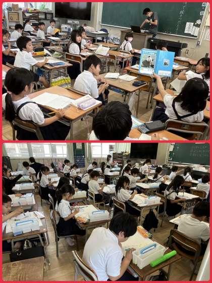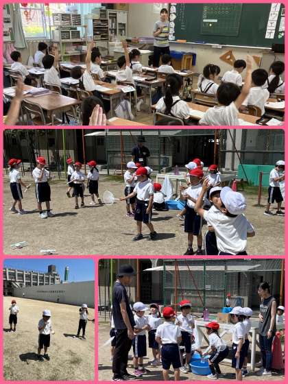 1年生が生活科の時間に,ストローやうちわなどを使い,シャボン玉を作って遊びました。どうすれば大きなシャボン玉や、たくさんの数のシャボン玉を作って飛ばすことができるか、それぞれに工夫を凝らしながら取り組んでいました。