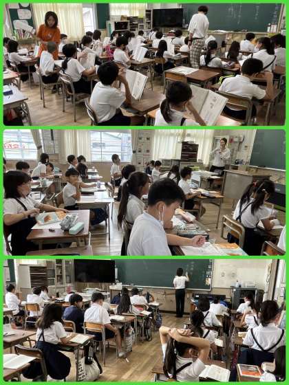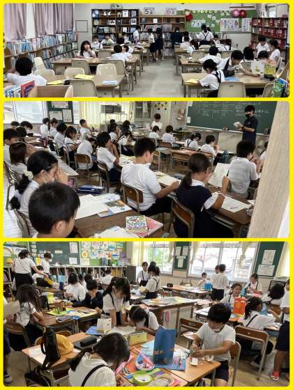 3年3組図画工作の学習。一人一人自分が考え、工夫した工作に取り組んでいました。色とりどりの作品ができあがりそうです。最後まで思いをこめて。