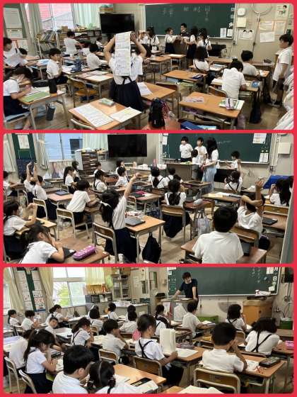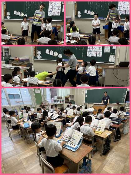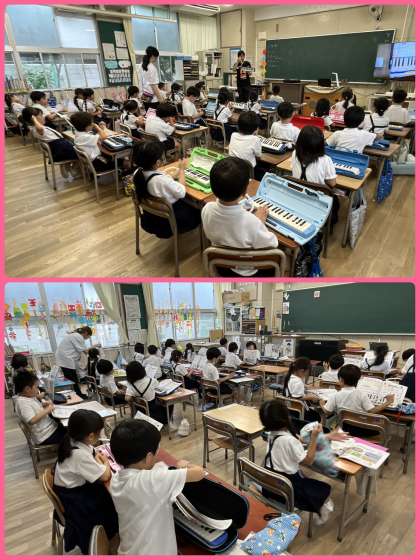 1年2組3組4組音楽の学習は鍵盤ハーモニカの演奏。指の動かし方だけでなく、吹き方も大事なポイントです。まわりの人たちと呼吸を合わせて取り組んでいました。1組は国語「おおきなかぶ」の学習。今日は実際におじいさん役となり、かぶを引っ張って、おじいさんの気持ちを考えていました。想像力は無限大!一人一人が想像したいろんなおじいさんの気持ちが出てきていました。すばらしい!