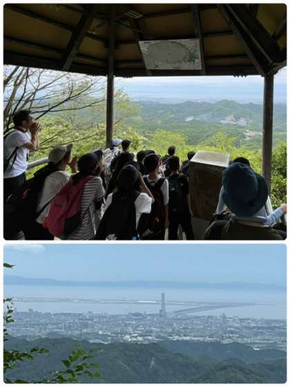 途中で下山する人もいましたが、ほとんどの人が山頂の展望台に着くことができました。よくがんばりました!!