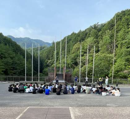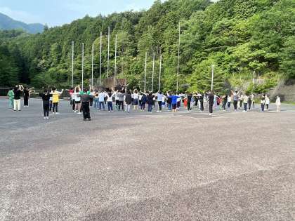 昨夜はあまり寝られなかった人もいたようですが、朝のつどいでのストレッチで体をほぐしました。