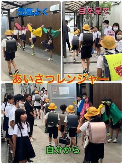月曜日にホームページでお伝えしましたが、昨日、そして今日もあいさつレンジャー&あいさつうちわ隊のみなさんが門に現れ、あいさつ運動をしてくれています。あいさつはもちろん、たくさんの笑顔も見られ、今日もすばらしい一日のはじまりとなりました。