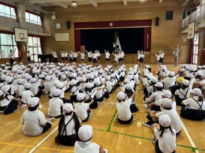 今日の児童集会は「応援団スペシャル」。赤組は運動場、白組は講堂に集まって、かけ声や手拍子をみんなで練習しました。声を出せる幸せ!やっぱり応援はこうじゃなくちゃね。