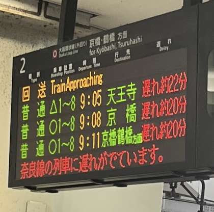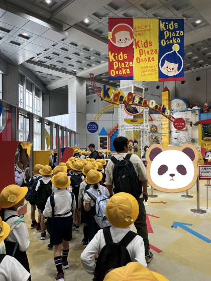 張り切って出発し、JR大阪から環状線に乗り換えたところ、車両トラブルで電車が来ない!超満員のホームで子どもたちは耐えました。本当にえらかったです…。