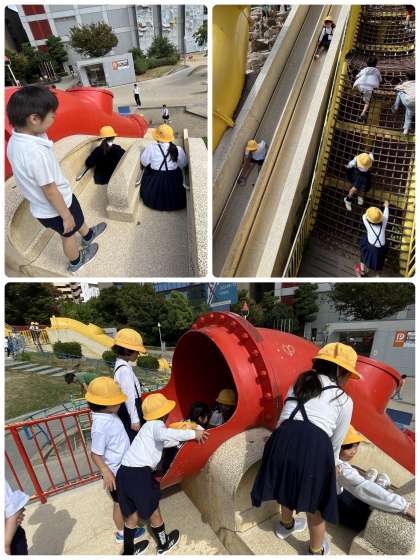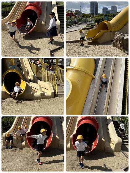 お弁当が終わったら電車の時間まで遊びタイム!すべり台も何度も行く子も。普段なかなか運動場で遊べない分、しっかり遊んでいました。楽しかったようです。