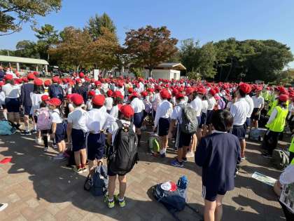 服部緑地公園に全学年到着しました。