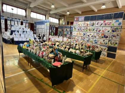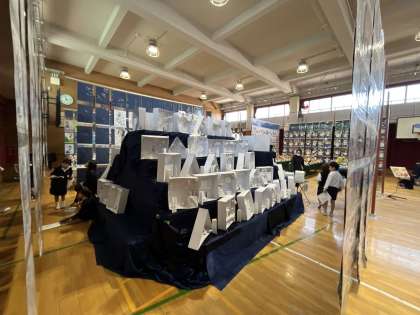 今日は1年生と2年生が鑑賞しました。お兄さんお姉さんの作品に歓声があがっていました。先輩のみなさん、作品でもいいお手本となっていますよ。