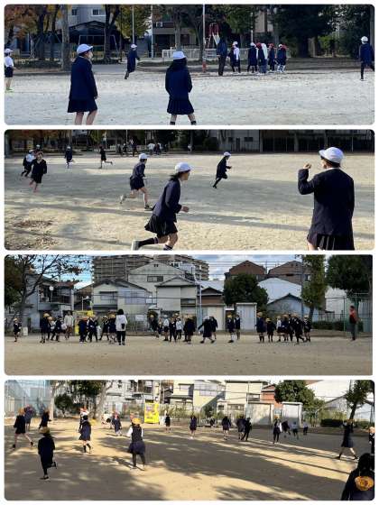 今日は、4年1組、3年3組が公園に行って体を動かしました。寒い一日でしたが、子どもたちの笑顔と歓声が今日も広がりました。