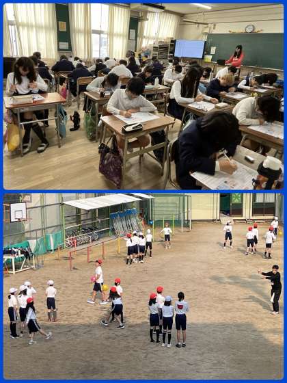 5年3組体育の学習はボール運動。チームで練習方法を考えて取り組んでいました。学習を重ねていく中で、技術だけでなくチームワークも上達しています。