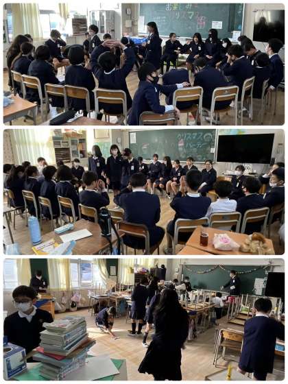 明日は終業式を入れて3時間の学習。通知表や宿題の配付もあります。というわけで、今日はどのクラスも学習のまとめ!だけでなく、大そうじやお楽しみ会がありました!2学期よくがんばったものね!!タイミングが悪く、写真がないクラスもあります。ごめんなさい。