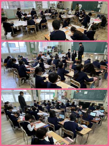 2年1組2組は生活科「あしたへジャンプ」の学習。できるようになったことを見つけようをめあてに取り組んでいました。書ききれないほど思いついた人もいれば、なにがあるかなぁ?と悩んでいる人も。