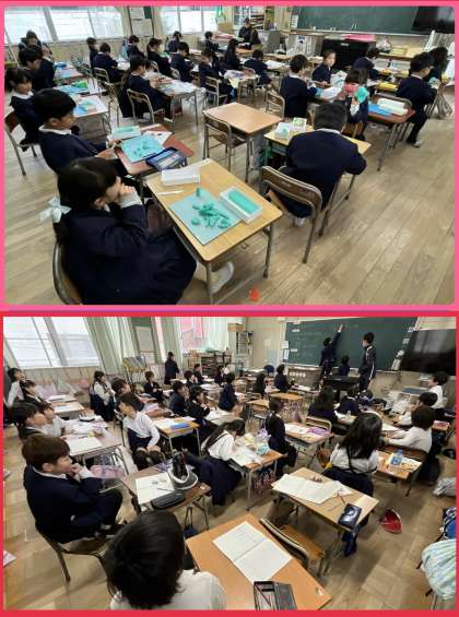 2年生算数は「100cmをこえる長さ」。1組と3組が学習していました。「メートル」という単位が登場です。1mとはどのくらいの長さなのか。身の回りにあるものの長さは大体どのくらいなのか。興味を持って学習に取り組んでいました。実際の生活場面でも必要になってくる長さ。ぜひ量感を養ってほしいです。