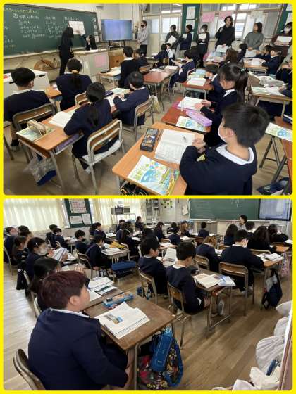 5時間目、3年1組算数「小数」の学習を教職員が参観しました。今日のめあては「小数と分数の大きさの比べ方を考えよう」。小数の0.2と分数の10分の4はどちらが大きいのか、みんなで考えました。小数と分数の大きさを比べるにはどうすればいいか、今までに習ったことをいかして友だちと学び合いながら比べ方を理解することができました。
