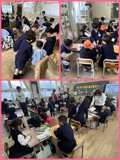 3つの幼稚園と保育園の年長児さんを招待して、幼小交流会を行いました。
