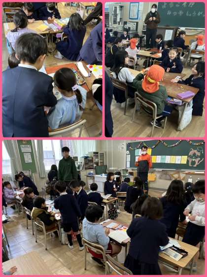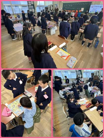 今日までたくさん練習してくれていた甲斐があって、年長さんもたくさんよろこんでくれていました。今までは学校の中で教えてもらうことが多かった1年生も教えてあげる立場になりました。成長したなぁと改めて感じました。1年生のみなさん、ありがとうね!今日で終わらず、2年生になったらもっともっと1年生にやさしくしてあげてね。
