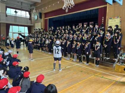 1年生から5年生の学年代表から6年生へ感謝の言葉。この1年のいろいろな思い出が甦ります。三津屋フェスティバル、全校遠足、なかよし班活動、、、本当にありがとう!