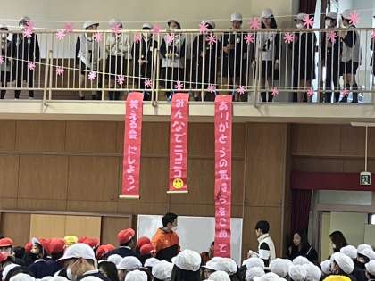1年生から5年生が、今までお世話になった6年生にありがとうの気持ちを伝える『卒業を祝う会』。今日までおくりものをつくり、歌の練習も何度もしてきました。笑える、すばらしい会になりますように。