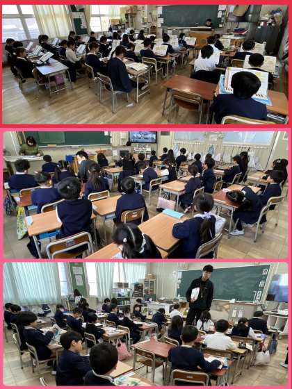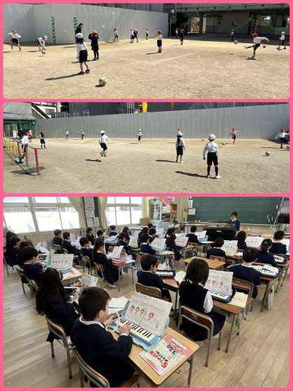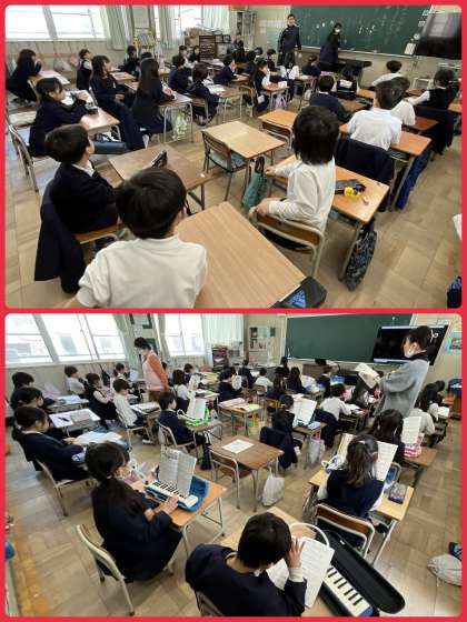 1年4組、2年2組3組音楽の学習。きれいな歌声や鍵盤ハーモニカの音色が響いていました。制限があったときにはできなかった学習です。のびのびと学習できることが幸せです。