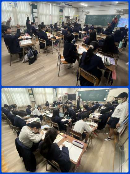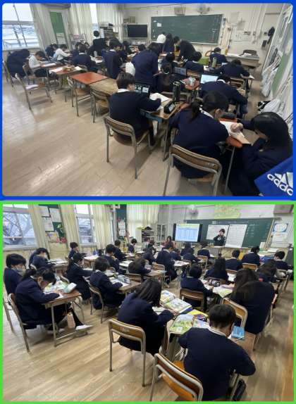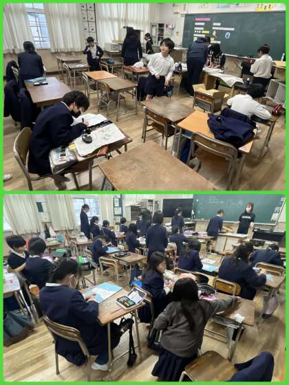 4年2組3組は木版画完成へ。彫り方も大事ですが刷り方も大事です。紙にしっかりと写るように丁寧に力強く刷れたかな?できあがった作品を鑑賞できる日を楽しみにしています。