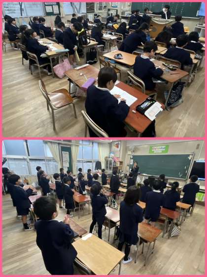 1年生の保護者のみなさん、お待たせしました!待ちに待った学習参観、本日はお越しいただきありがとうございました。2組4組は見に行った4時間目にも練習していました。保護者のみなさんも成長を感じていただけていたらうれしいです。ぜひお子さんに感想を伝えてあげてください。残念ながらお越しいただけなかった保護者のみなさんも、ぜひお子さんに感想を聞いていただき、がんばったところを褒めてあげてください。よろしくお願いします。