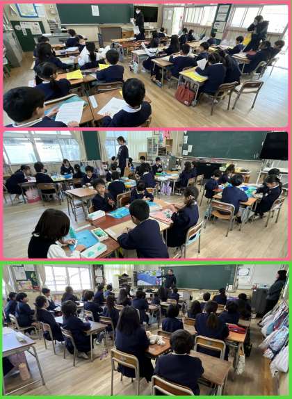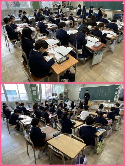 1年2組学級会は「おたのしみかいのけいかくをたてよう」。1年間、みんなでがんばってきたものね。みんなの力で、とびっきり楽しい会にしてね!