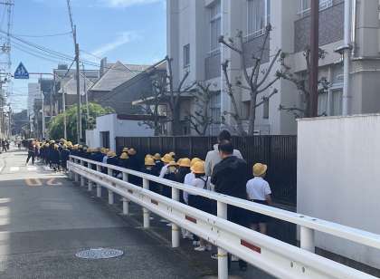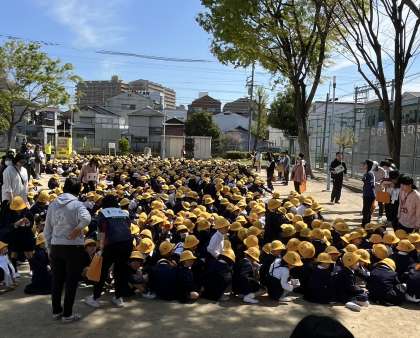 給食室から出火したときを想定して避難訓練を行いました。運動場への避難で済む場合もあるでしょうが、火災が広がった場合を想定し、三津屋東公園まで避難をしました。新学年教室になってからはじめて、かつ校外への避難でしたが、子どもたちは目的を考えて行動できていました。実際にないことが一番ですが、いざというときに避難できるように備えていきたいと思います。