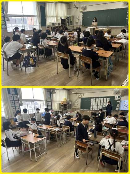 3年1組は図工、2組は英語の学習のようすです。3年生も担任ではない先生に教えてもらう教科があります。たくさんの先生に教わることで学びも深くなります。どんどん力を伸ばしてほしいです。