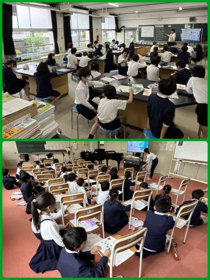 4年3組音楽の学習は「歌劇『魔笛』」の鑑賞。モーツァルト作曲の、登場人物がたくさん出てくるオペラです。音楽の学習は、歌唱や演奏だけでなく鑑賞も大事です。音楽の学習を通して、豊かな感性を育んでほしいです。